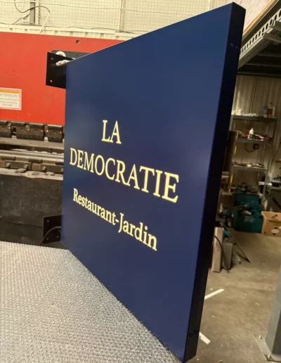 Les drapeaux ajourés lumineux sont des enseignes en forme de drapeau avec des découpes laissant passer la lumière, parfaites pour un effet saisissant.